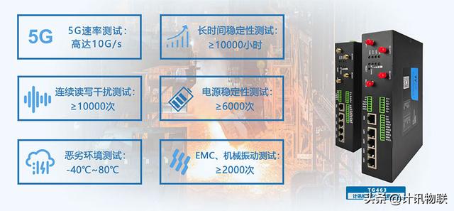 计讯物联工业路由器TG463,5G千兆低延时、高速率,高达20Gbps速率,端到端延时低于5毫秒。解决工业4g路由器延时大的难题,能提供更高速无损采集传输各种大数据如:文件、图片、动画、声音及视频等。通过EMC等级测试,耐高低温材料(-40℃至80℃),宽压(5V-35V),具备超强的防潮、防雷、防电磁干扰能力。