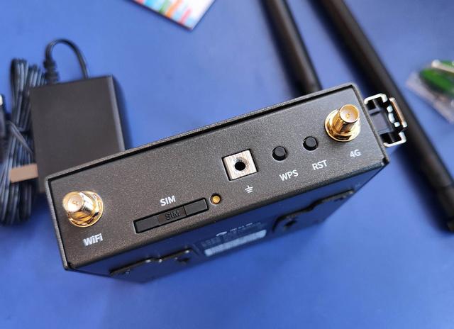 两根天线分别是不同的,WiFi一根,4G一根,长短不同,安装的时候要看清楚。其余的就是一些按键,还有一个sim卡卡槽。