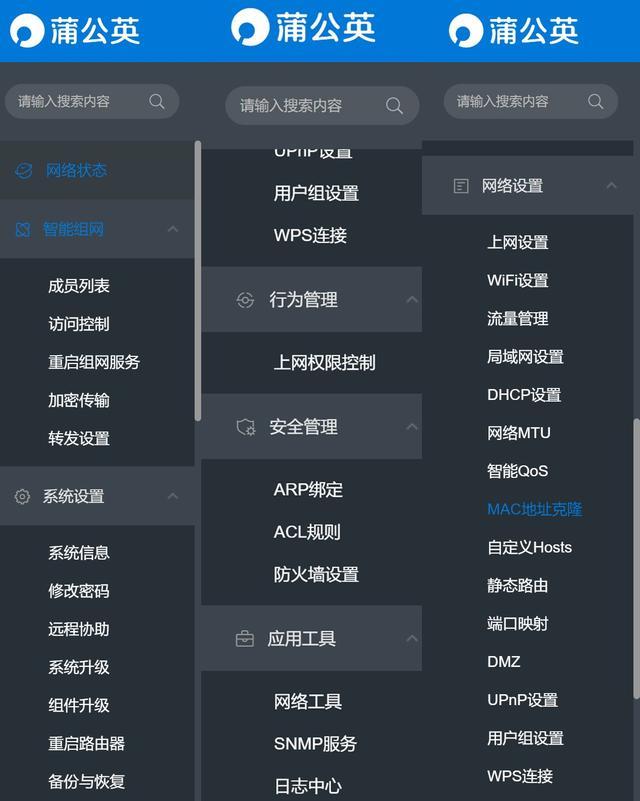 这个路由器支持本地管理和远程管理两种方式,功能非常多,本地管理中就像是家庭路由器,像上网设置、设备管理这些功能都有。而远程管理才是的重头戏,在云服务平台中可以组网,可以行为管理,可以远程设置路由器,即使人没在公司和厂区,也能远程随时控制路由器。总之蒲公英R300A给人的感觉就是:东西虽小但是功能相当丰富,既有易用的人性化功能,又包含常用的工业级功能。