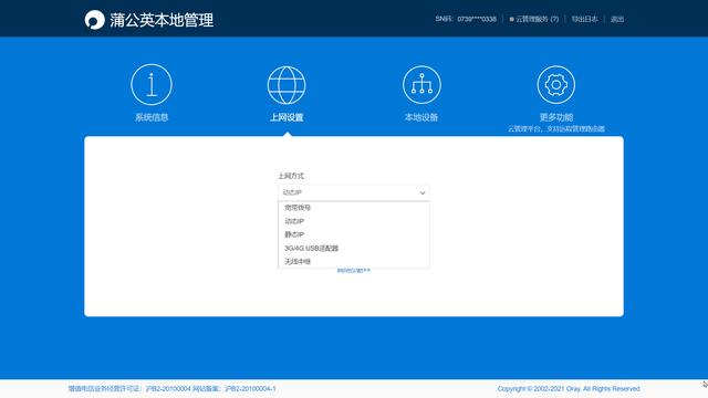 通电后,我们连接有线网或通过USB口连接无线网卡后,使用电脑或手机连接路由器,使用浏览器访问10.168.1.1进入本地配置页面。路由器可以智能识别联网状态,当然,我们可以根据自己需要手动设置动态IP、静态IP、宽带拨号、无线中继或3G/4G适配器等上网方式。