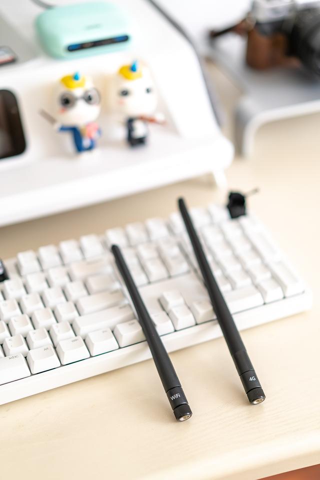配备了两根外置天线,分别是4G天线和WiFi单频天线,主要是在没有网线的情况下可以配合4G和WiFi中继使用。
