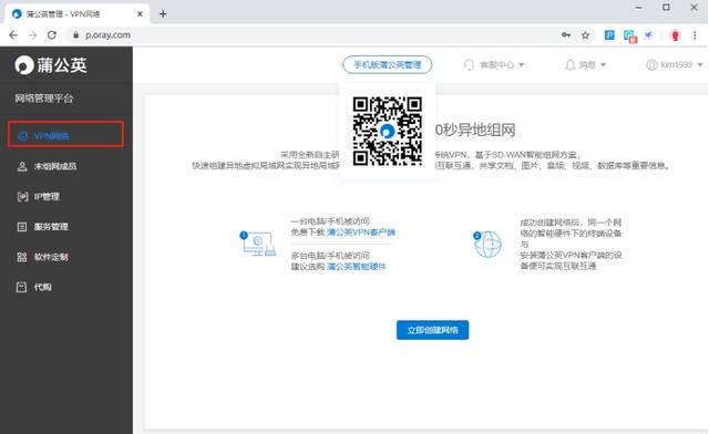 进入后点击左侧的【VPN网络】-【立即创建网络】