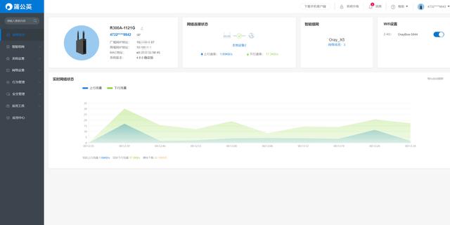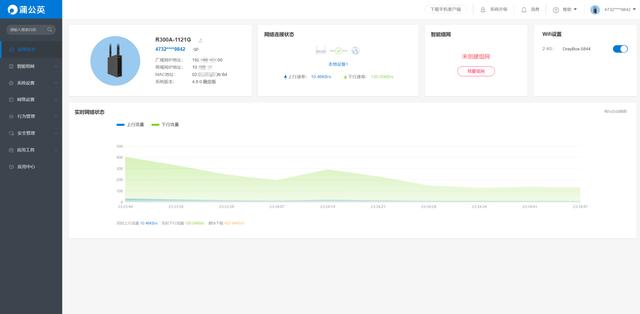 在进入路由器的管理后台后,在主界面的右边,可以输入已有的网络ID组网,如果没有就新建一个!组网很简单,成功后会在界面显示。在主界面的左侧,有很多功能,可以对路由器进行设置,比如:智能组网、系统设置、网络设置、行为管理、安全设置、应用工具以及应用中心,在每一个大类下还有其它小类,设置起来也很容易,通俗易懂。