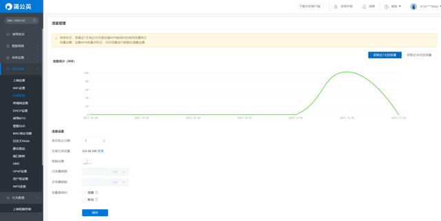 另外,在主页面还有实时网络状态显示,可以了解下行/上行流量,每5秒自动更新,非常一目了然。在网络设置中,可以对流量进行限制或者设置临界提醒。因为在4G网络状态下,通过限额或者设置提醒,可以让我们掌握4G物联网卡的实时状态,不会因为无限流量而超标,导致不能正常运行或者欠费。