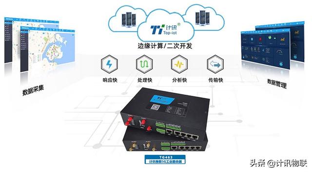 计讯物联TG463 5G千兆工业路由器,可实现边缘计算,具有响应快、处理快、分析快、传输快的特点。可以有效提高传送速度,减少延迟,分担云计算资源负荷。计讯物联TG463支持二次开发,用户可根据需求进行私有协议开发、设备可兼容各行业规约标准,方便用户根据具体项目需求进行应用设备联网。