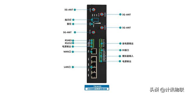 计讯物联TG463 5G千兆工业路由器可提供模拟量/数字量/开关量等数据采集控制、支持视频/图像/语音采集。支持全网通/5G/4G/GPS/WiFi等无线通信。支持二次开发。兼容各行业通信协议及行业规约,满足各种工业应用组网。