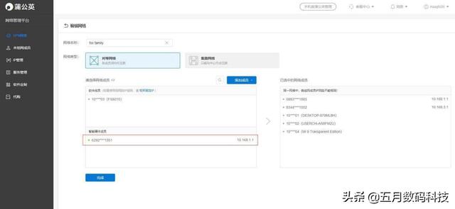 但是无商不奸,大部分无人售货机的远程管理功能是有年费的。这也是我选择使用蒲公英R300的第二个原因,它可以通过智能组网实现对无人售货机的远程管理。操作起来很简单,进入路由器后点击左侧智能网络-立即创建网络,然后添加成员,R300是硬件成员,完成后左下方的地方就会显示硬件,然后把需要组网的R300和其他成员拖到右边即可。