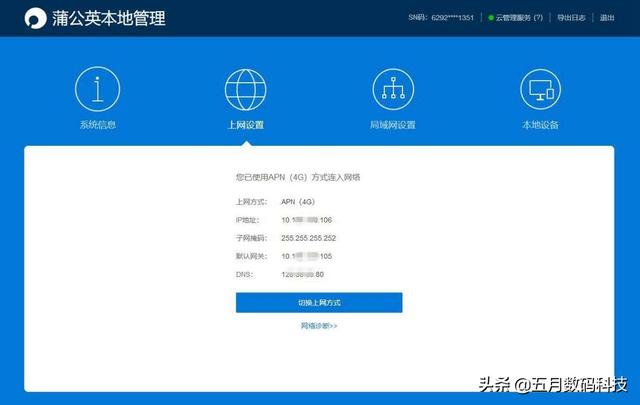 登录蒲公英管理后台,设备路由器联网方式,这款路由器有四种联网方式,有线、无线中继、4G,我这边的售货机是在公司走廊里,当时没有预留网线,无线也覆盖不到,只能使用4G模式了。