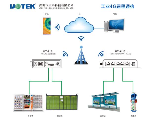 应用场景里面所用到的UT-9110 4G LTE 工业路由器1WAN+4LAN