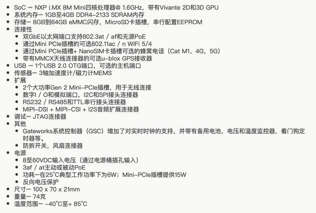 该公司为该板提供了Ubuntu Linux板支持包(BSP)。它是由美国制造的单板计算机,而且也是Gateworks第7代威尼斯坚固耐用的工业单板计算机家族的一部分。它的目标是轻型嵌入式应用,例如IoT网关、机器学习、数字标牌和机器人技术等。你们可以在Wiki中找到硬件和软件的文档。