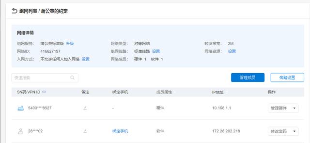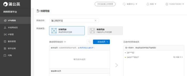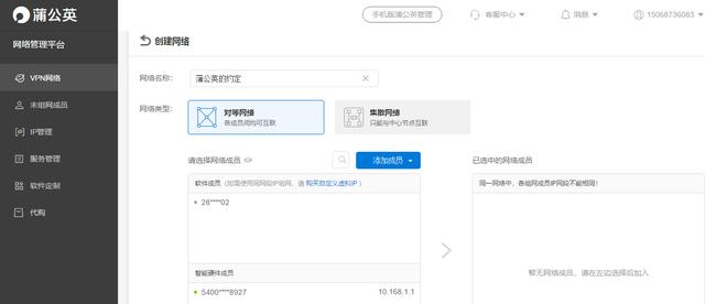 按照向导,在蒲公英后台先创建网络,然后将路由器成员跟客户端成员添加到同一个网络中,组网就完成了。