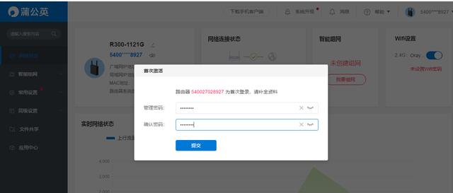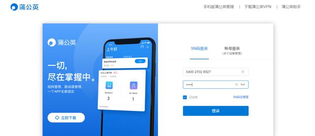 进入蒲公英管理平台,SN码在路由器底部查看,密码是默认的。为了安全性,首次登录后需要重新设置密码。