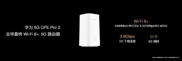 今年2月份华为终端和战略布局线上,华为正式发布了华为5G CPE Pro 2产品,在核心配置上,华为5G CPE Pro 2采用了7纳米巴龙5000芯片,支持5G NSA/SA双模网络,同时还支持200MHz频宽和载波聚合技术,5G理论峰值下载/上传速度高达3.6Gbps/250Mbps。