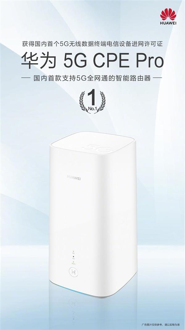7月10日消息,华为终端官方微博宣布,华为5G CPE Pro获得中国首个5G无线数据终端电信设备进网许可证,这是国内首款支持5G全网通的智能路由器。