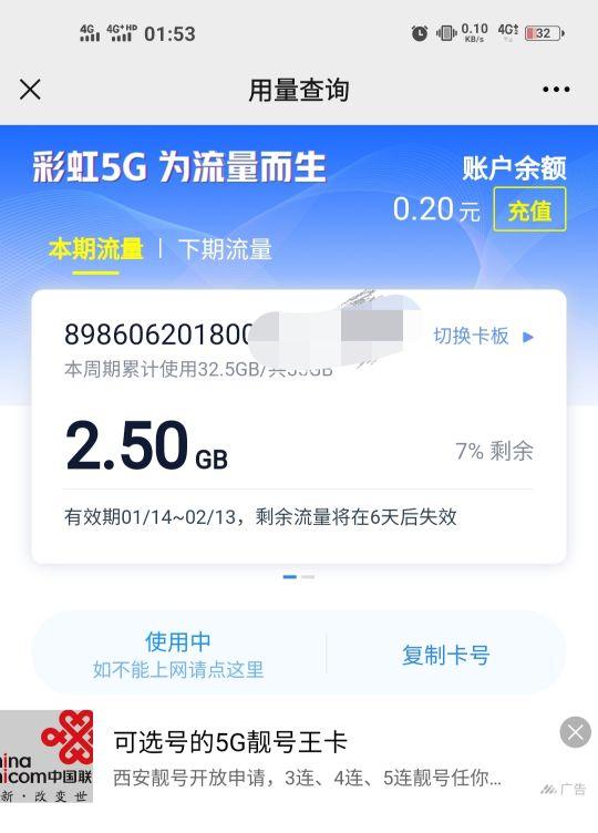 首先说说流量虚的严重吗?我一个月正常电话卡也就用40个G,这个月快结束了,我这卡一共订了35G流量,还剩2个多G。