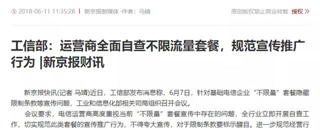不知道大家是否还记得,运营商们曾经宣传的“不限流量套餐”呢?曾几何时,“不限流量套餐”成为了众网友选择运营商的硬标准之一。