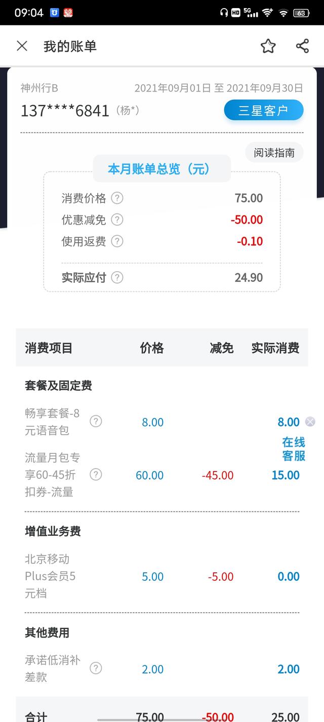 本人现在套餐:一个月固定费用25元,13G流量,30分钟语音,送一年咪咕咪咕会员,送38元档次PLUS会员,每月送两张通用兑换券可以换两种视频会员月卡,也可以兑换其他优惠卷。