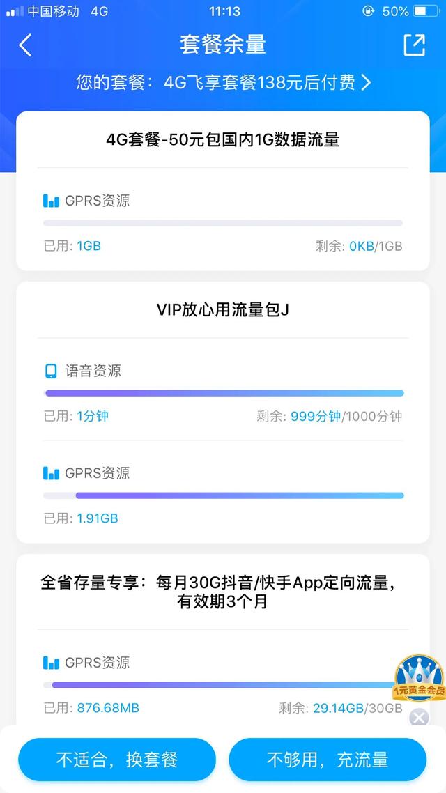 担心被套路,再次打开移动手机营业厅查询流量套餐的余量时,却发现刷抖音时使用的是20G限速的流量,定向流量包用之甚少。