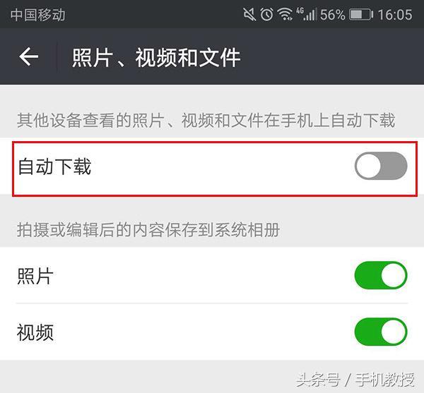 点击微信【我】-【设置】-【通用】-【照片、视频和文件】,即可看到一个【自动下载】的选项。若该选项打开,那么你在电脑等其他设备上查看的照片、视频和文件在手机上就会自动下载。本以为微信在电脑上登,手机就不会消耗流量,于是放心的各种查看图片、视频、文件,素不知如此一来手机上也在同步加载这些内容,于是流量就这样哗啦啦的流走了都不知道。