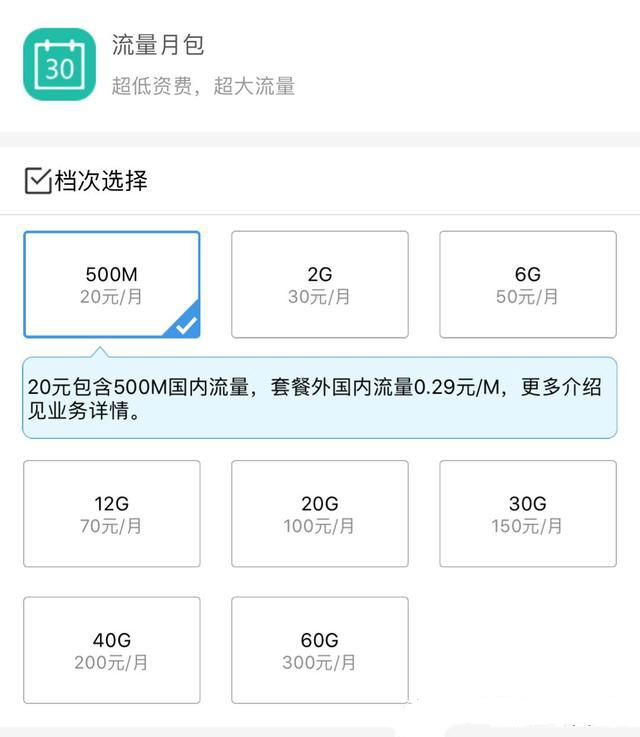 从移动手机营业厅的最新嘹亮报套餐显示,现在确实没有了以前"坑人"的5元30M流量包,但是,但是,现在最低的直接是20块钱每个月的500M流量包,什么?使得你没有看错,就是20块钱一个月,然后包500M流量。小编表示,还不如5块钱30M的呢,和以前有什么区别?