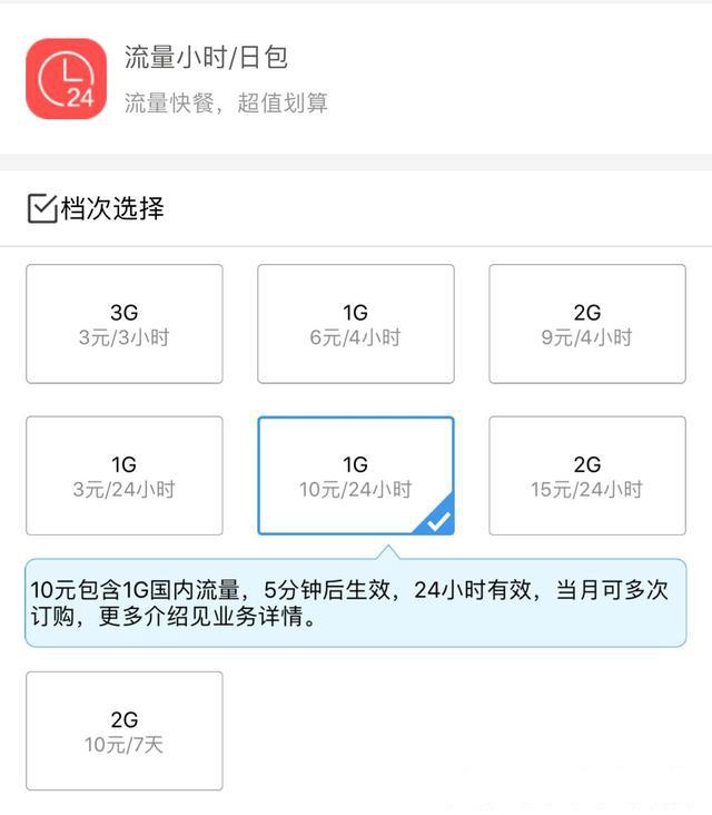 然后我们再来看看移动的流量日包,对于现在其他两家运营商动不动就是1块钱1G流量每天的日包来说,移动着3块钱3G3小时的流量包显然是不占优势的,同样是1块钱1个G其他两家运营商24小时有效,到移动这里就只有3小时有效了。