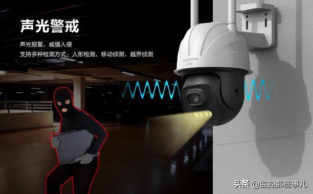 除了造型外观上的与众不同,这款新品在配置和功能上也是异常出色的!其支持400W像素,拥有水平垂直双云台,可实现360°无死角监控;双光源补光,可实现三种夜视模式智能切换;智能人形检测,发现异常,立即声光警戒,并向手机推送报警。其还拥有大功率喇叭,可支持双向语音清晰对讲;支持手机远程布控,可实现全天候监控;外置5dB高增益天线,穿墙性能好;支持WiFi的同时也支持有线联网,满足多场景需求;室外防尘防水,可满足户外场景的使用,能广泛应用于需要大范围高清画质监控的场所,如住宅区、停车场、景区、公园、十字路口、工厂、公路等。
