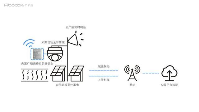 借助于无线通信与AI深度学习技术的融合,智能警戒摄像机可实现高效及时的河道防溺警示。在需要实时监测防溺的岸边、水库堤坝、深水区等区域提前部署智能警戒摄像机,摄像机采用AI深度学习算法,可精准识别人体,一旦有人靠近危险水域,即主动声光告警,提醒人们离开。同时,为增强警戒效果,还可同时配置IP网络云广播音柱,内置了广和通4G模组的摄像机可将人体影像实时发送至云监控平台,触发平台广播终端,对平台影像进行监控的管理人员可进行实时喊话,播放提示语音。为实现广水域部署,减少设备功耗,通过部署品质电池及光伏能源板,将太阳能高效蓄电,可帮助摄像机实现长久电力续航。
