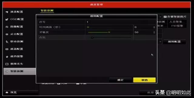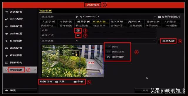 ⑥点击"规则配置"可对区域侦测的参数进行设置。