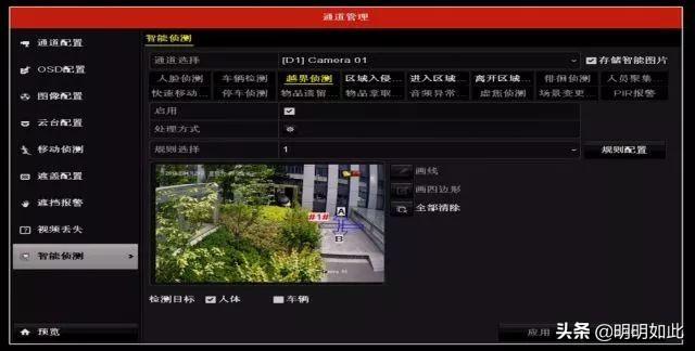 ⑤默认配置下只勾选检测"人体",如需要同时检测车辆,则要把"车"进行勾选。