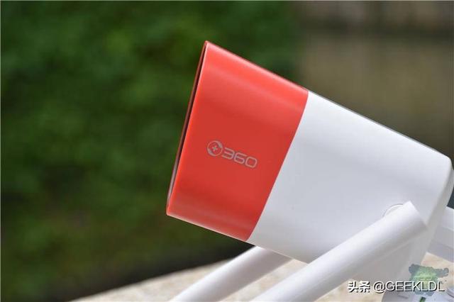 红色警戒顾名思义,摄像机必然有红色部分,所以这款360智能摄像头红色警戒高配版依然由两个颜色组成,红色和白色,红色部分就是机头,简单印有360的LOGO,机身后部则是白色的
