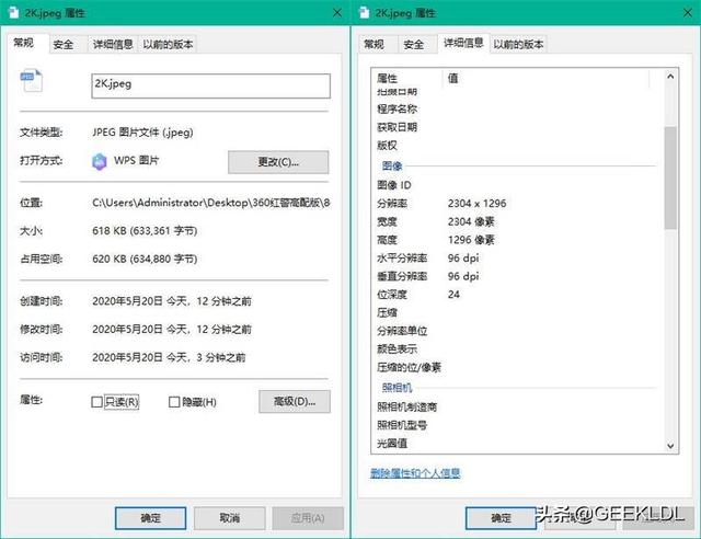 2K:照片文件大小为618KB,分辨率为2304*1296