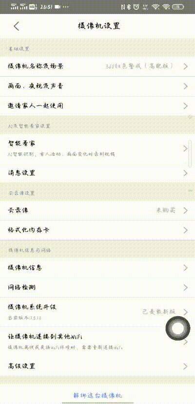 360智能摄像头红色警戒高配版最为一款智能摄像机当然必须有微信公众号的通知提醒,也能在360智能摄像机微信公众号上查看有画面变化的视频