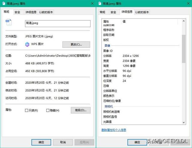高清:照片文件大小为488KB,分辨率为2304*1296