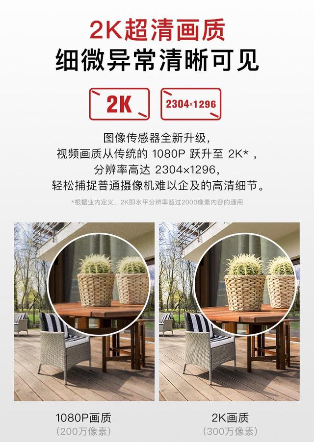 对于一款安防摄像机来说,画质清晰是评价其好用与否的重要因素之一,因为如果因画质不清晰而导致只能看到不法分子的人影,却看不清其人脸等细节,摄像机就等同于没有发挥作用。360智能摄像机红色警戒高配版在图像传感方面全新升级,视频画质从1080P跃升至2K,分辨率高达2304*1296,搭配高清光学镜头模组,F1.6大光圈,110°监控角度,可以记录下普通摄像机难以捕捉的细节。到了黑夜,360智能摄像机红色警戒高配版内置的大功率红外点阵灯,还可以自动切换至红外夜视模式,让用户时刻都能看得清。