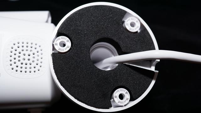 底座直接就是收线槽和三个螺丝孔,这也意味着,不将底座固定的话,是没办法像云台版直接放着使用的。