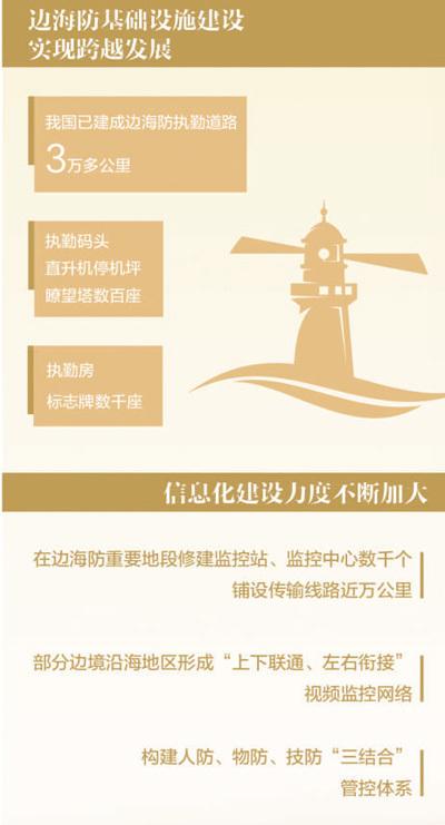 边海防工作是治国安邦的大事,关系国家安全和发展全局。党的十八大以来,我国边海防基础设施建设实现跨越式发展,信息化建设力度不断加大,管边控海能力得到有效提升,为建设强大稳固的现代边海防奠定了坚实的物质技术基础。