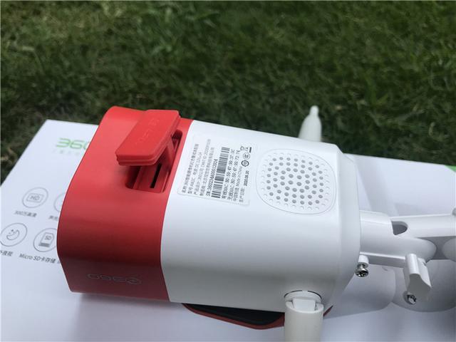 摄像机背面是放置mirco SD卡的卡槽和扬声器孔,卡槽还经过了防水处理,因为360智能摄像机红色警戒高配版定位的是户外机,因此防水能力是其必须拥有的一个能力。