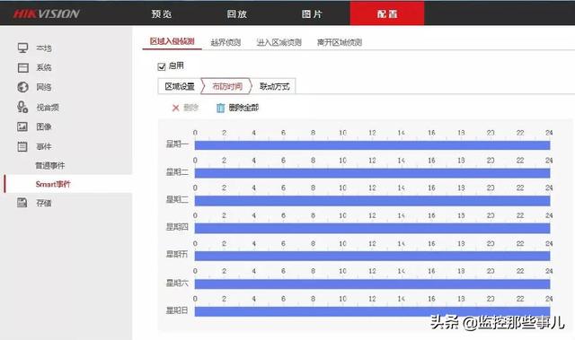 需要注意的是:在智能警戒体系中,前后端的布防时间是相互独立的,目前后端NVR界面无法直接更改前端摄像机的布防时间。
