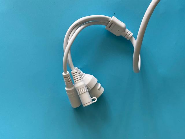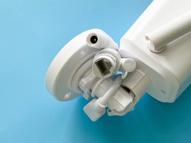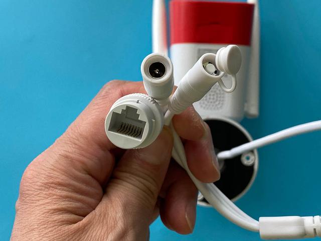 电源是直接插接的,有线网络就不用了,还是用无线好了。摄像头的有线线口就把防护配件接上,然后绕在边上好了。