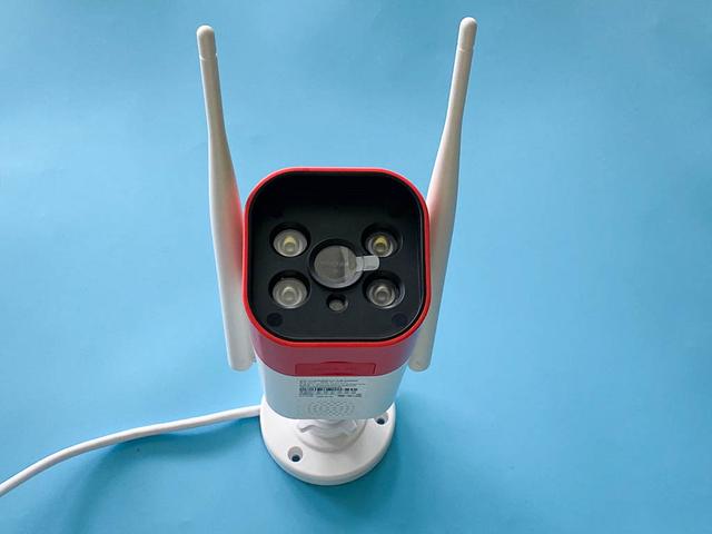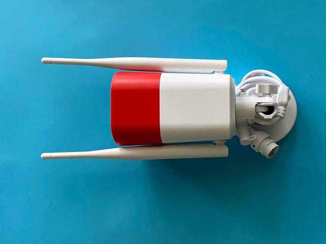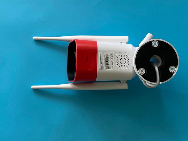 取出摄像机,还是经典的户外类型,前面红色、后面白色,2根天线。