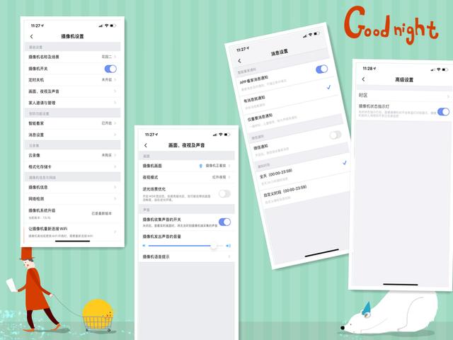 在设置里,则可以设置多种功能,可以根据自己的需要设置。包括消息通知、通知的时间、通话的音量、夜视模式等等,都是可以根据自己的喜好和需要来设置的。