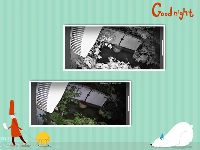 上图就是夜晚红外和开启辅助照明后的对比。
