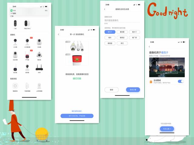 然后我们就开始添加摄像机了,打开360摄像机app,添加新的设备,按照提示步骤,很容易就添加上了。