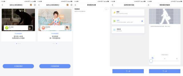 连接后会要求使用者作出一些设置,包括有摄像时智能设置、侦测时间段设置、智能侦查灵敏度设置等。