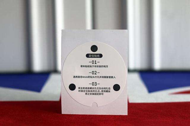 上墙定位贴纸顾名思义在安装时用于上墙钻孔定位使用,往墙上一帖然后电钻对准三个黑点进行配孔即可: