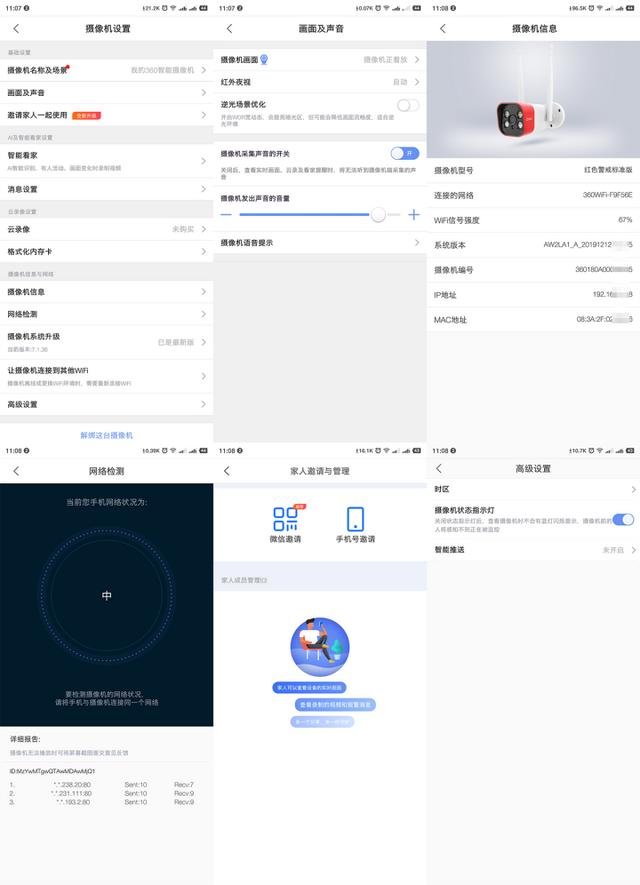 此外其摄像机的设置选项也是蛮多的,包括有画面及声音、网络检测、家人邀请管理等等,相信后续功能会更丰富更完善。