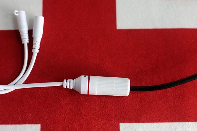电源适配器为带线设计,线材长度目测为2米左右,室内安装使用基本够用,但相信在许多复杂的户外环境下就会有点捉襟见肘了,延长插线板便是您的选择了。