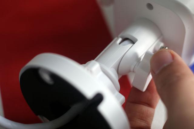 主机摄像头与底座连接轴连接位置有螺丝与旋钮进行控制,以保证角度调节的方便和后期稳固性。