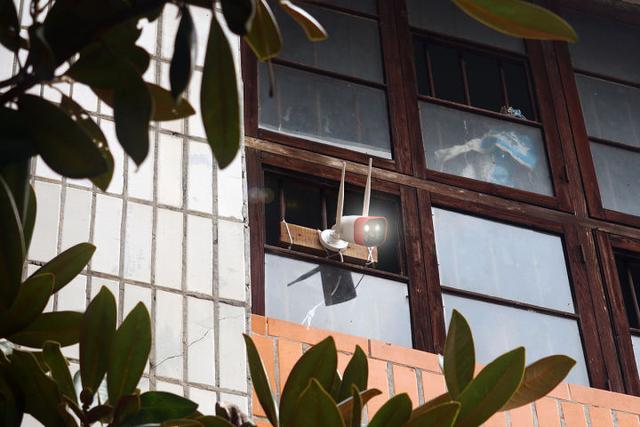 再将整个装有360摄像机红色警戒标准版的木板固定在了窗户上,通过手机APP短的实时画面进行想要角度和范围来调节摄像机角度即可。