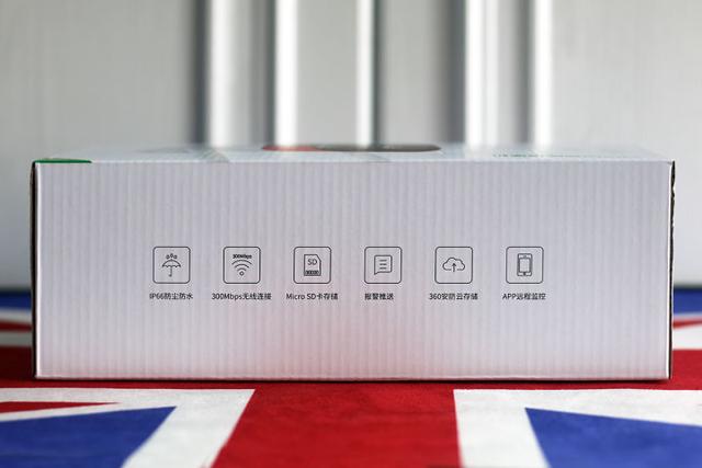 上下侧面再次介绍了360摄像机红色警戒标准版的特色:IP66防尘防水、300Mbps无线连接、Micro SD卡存储、智能推送、360安防云存储、APP远程监控。